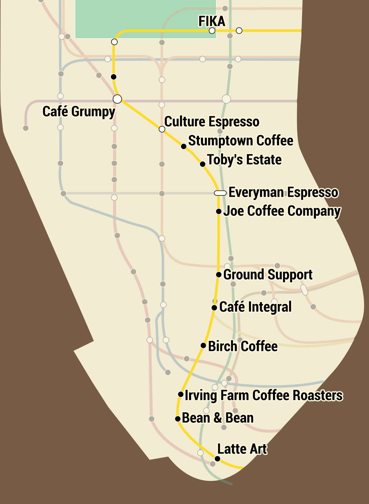 New York City Coffee Map - When you have eliminated the JavaScript whatever remains must be an empty page. Choose from thousands of new york city subway map coffee cups designed by our community of independent artists and iconic brands. 23082018 Bluestone has five full-service cafes in the city serving brunch and lunch plus 11 more pared-back coffee shops that focus on just drinks and avocado toast.