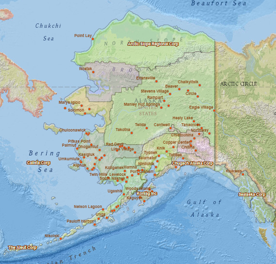 Alaska Native Villages Regional Development Corporations Ribes Main Access Map And Tribes Listing