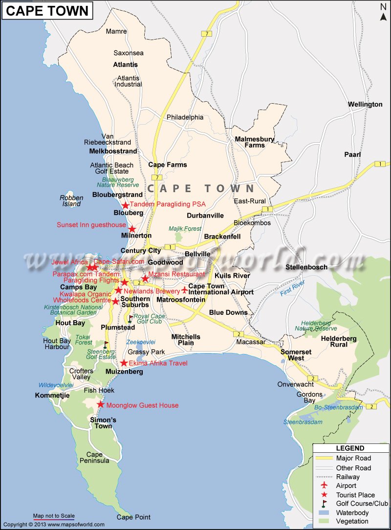 Mapsofworld On Twitter Capetown Map Showing The Major Roads Railways Airports Tourist Places Of Cape Town Southafrica Https T Co 3f6d71zihr Https T Co Kwbwkb99lb